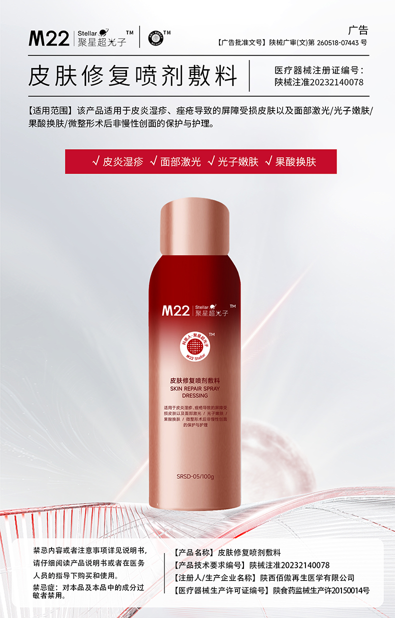 科医人M22 Stellar医用重组胶原蛋白屏障修复喷剂敷料 100ml/瓶
